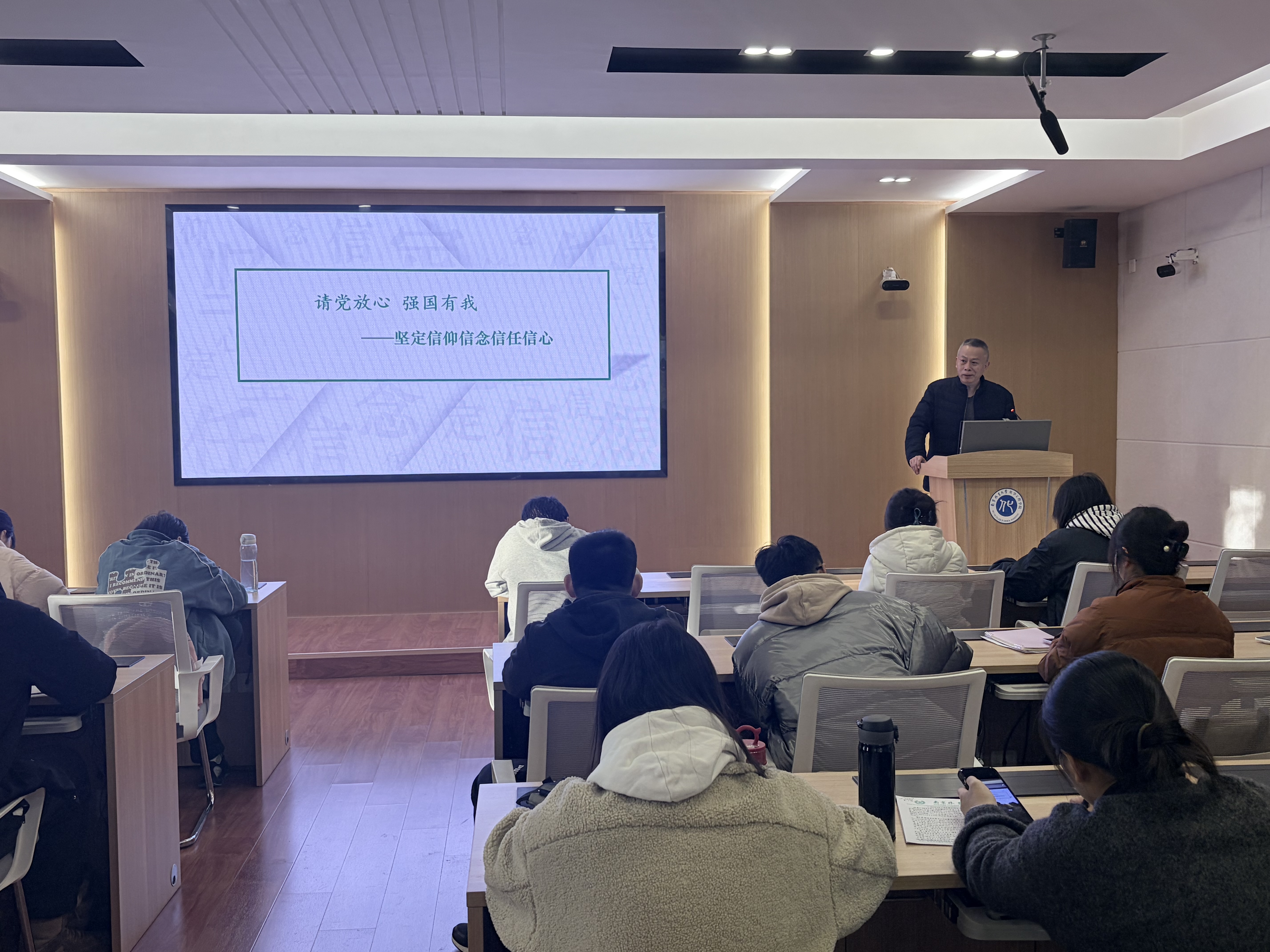 为深入学习贯彻党的二十届四中全会精神,强化新党员的理想信念与责任担当,11月19日下午,化学工程学院在化工楼2400报告厅开展新党员培训班专题学习,特邀马克思主义学院胡华强老师讲授“请党放心·强国有我——坚定信仰信念信任信心”专题讲座。