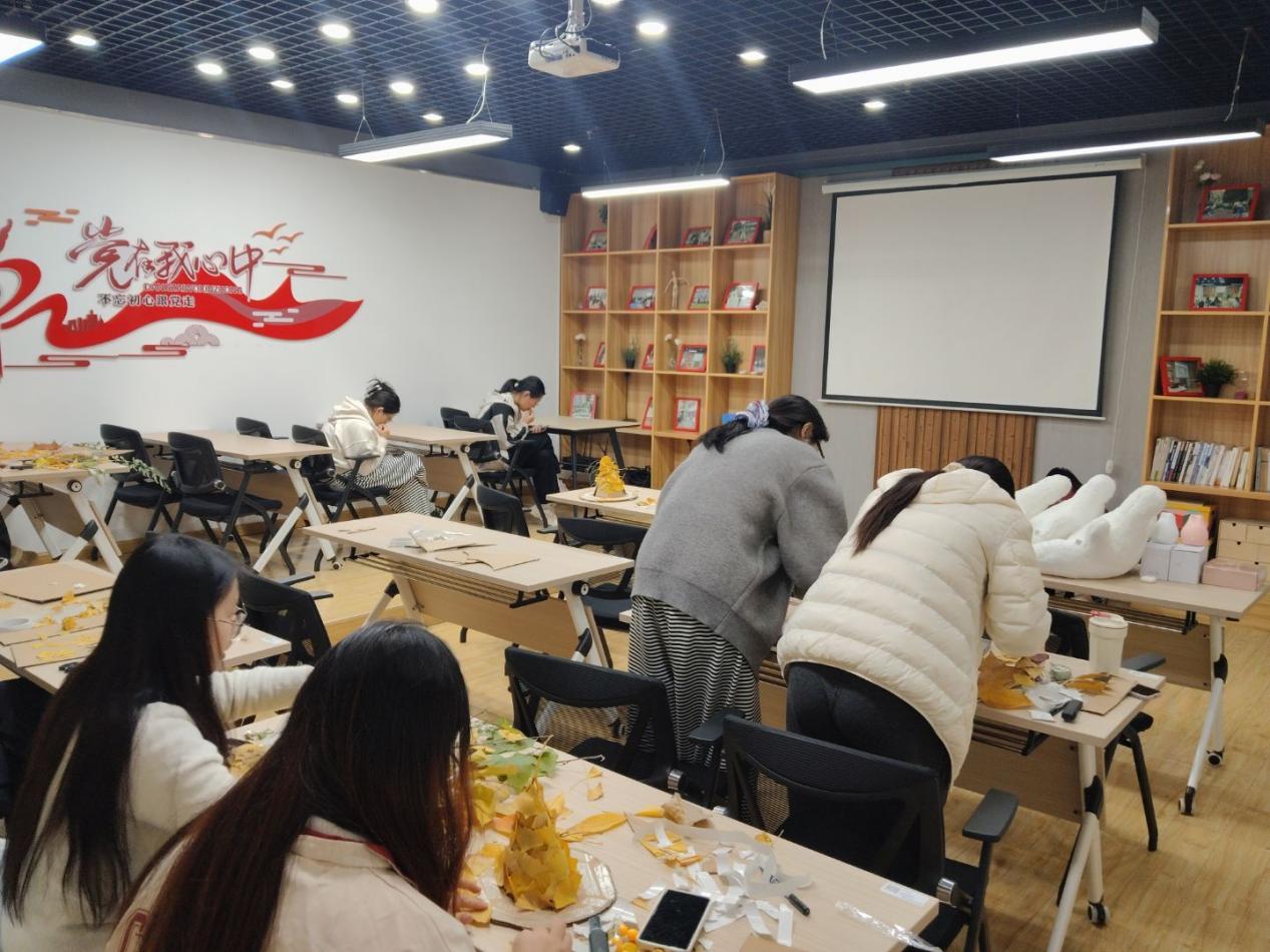 参与同学们俯首桌前,指尖轻抚落叶纹路,专注地将一片片平凡的叶子转化为艺术品。有的将银杏叶制成精致的书签,记录阅读时光;有的以不同形状的叶片拼贴成富有意境的画作;还有的将叶子与文字结合,创作出充满哲思的“叶语卡片”。“平时走路匆匆,真的很少低头看一片叶子的模样。”参与活动的李同学分享道,“当我静下来观察叶脉的走向,突然有种奇妙的感觉——就像在阅读自己的内心地图。”