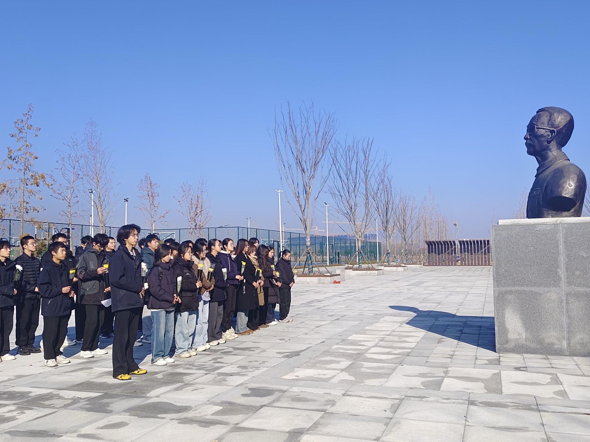 活动现场气氛庄严,同学们肃立于梁希先生塑像前,手持菊花,集体默哀致敬,表达对梁希先生的无限追思与崇高敬意。学生代表惠严峰宣读了《弘扬梁希精神、争做时代新人》倡议书,回顾梁希先生献身林业与教育事业的事迹,号召同学们以先生为榜样,勇担时代使命,为国家生态建设与绿色发展贡献青春力量。随后,全体同学依次上前敬献鲜花、鞠躬致敬。