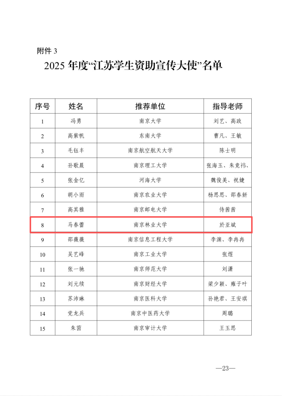 近日,2025年江苏省"苏乡永助"资助育人主题活动评选结果正式公布,我院马春蕾同学凭借扎实的政策素养、突出的宣传事迹与强烈的责任担当,从全省百余所高校候选人中脱颖而出,成功入选"江苏学生资助宣传大使",成为我校获此殊荣的优秀学子代表。此次入选既是对马春蕾同学个人表现的高度认可,也彰显了我院在资助育人工作中取得的显著成效。