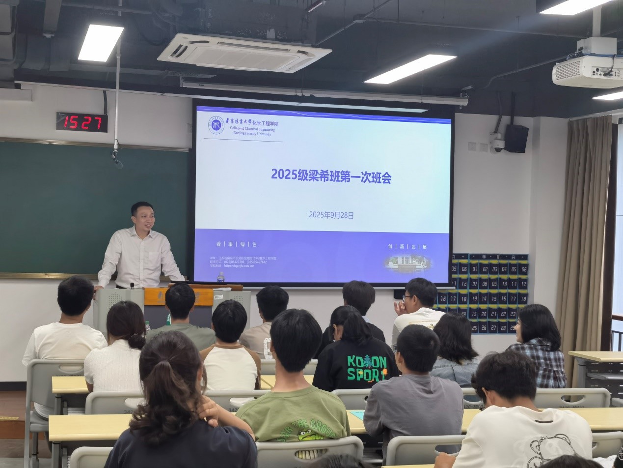 为引导梁希拔尖创新人才实验班(以下简称“梁希班”)学子明确培养目标,促进师生交流,加强班级凝聚力,化学工程学院于9月28日在白马校区举行了2025级梁希班班会活动。化工院院长兼2025级梁希班学术班主任黄超伯、2025级辅导员兼梁希班管理班主任武文瑛、林化系专任教师马文静、往届梁希班优秀学生代表及40名2025级梁希班新生参与了本次班会。