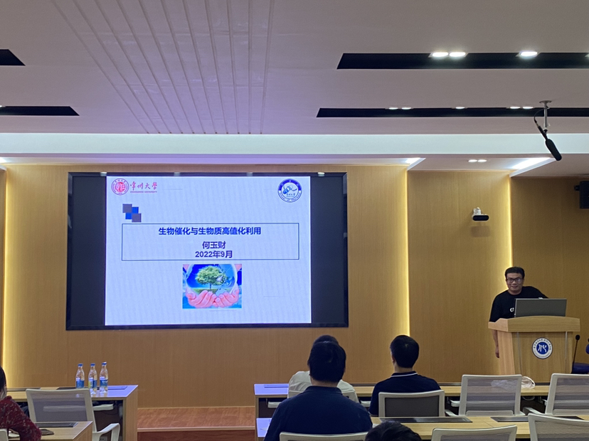 何玉财教授以《生物催化与生物质高值化利用》为主题,围绕生物质预处理体系的构建和木糖、果糖的高效转化制备糠醛和5-羟甲基糠醛进行了详细的介绍。何教授课题组以生物质中纤维素、半纤维素、木质素组分为原料,通过生物酶催化的方式,高效促进各类生物基产品的生产,实现了生物质的高效预处理以及高值化利用,为实现"碳达峰、碳中和"奠定了基础应用理论。
