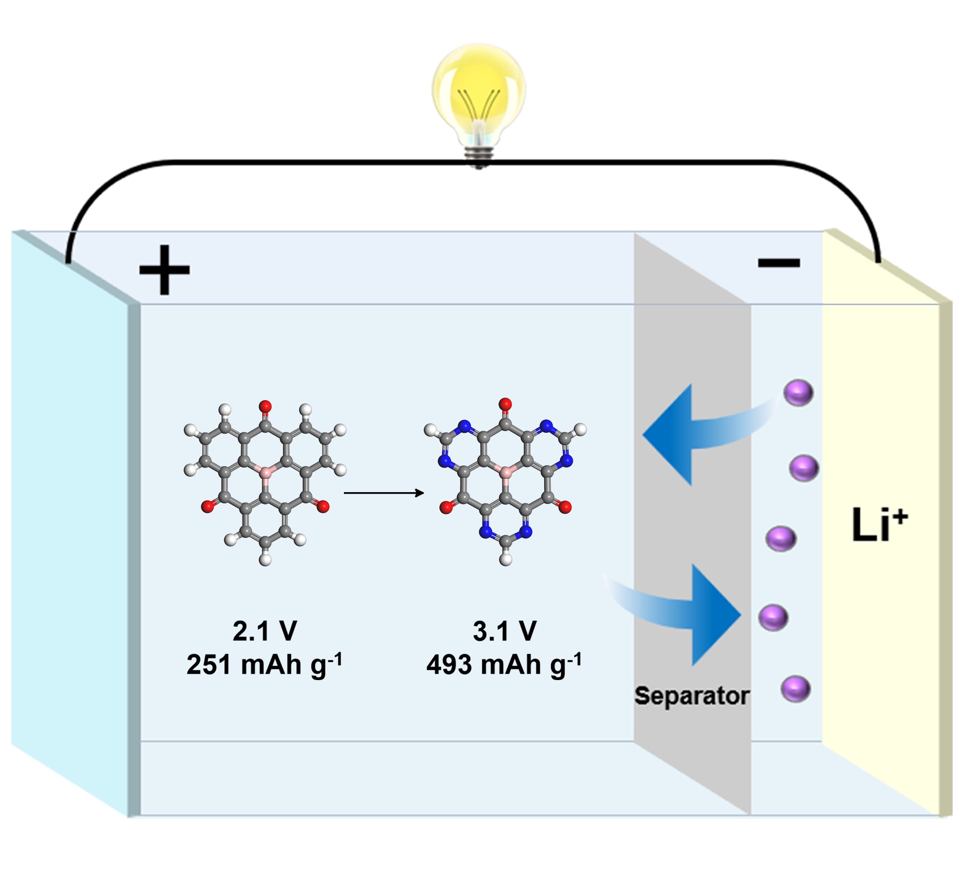 开发高性能、低成本、可持续的电极材料是锂离子电池技术开发的关键。目前商业化的锂离子电池正极材料主要依赖于层状过渡金属氧化物(例如 LiCoO2, LiMn2O4)。然而,该类材料容量有限且使用成本高、环境负担大。基于氧化还原机制的有机材料可以直接从丰富的生物质中提取,储量丰富,具环境友好,为绿色储能技术的发展带来了希望。开发新型有机电极材料并揭示其组成与电化学性能之前的构效关系对于可持续、高性能锂离子电池的发展具有重要意义。